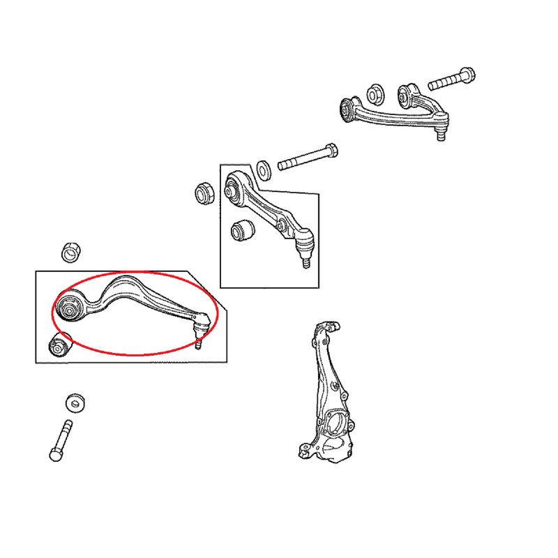 Braço inferior curvo do lado esquerdo da suspensão dianteira.