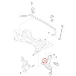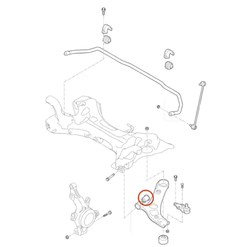 Bucha anterior da bandeja do lado direito ou esquerdo da suspensão dianteira.