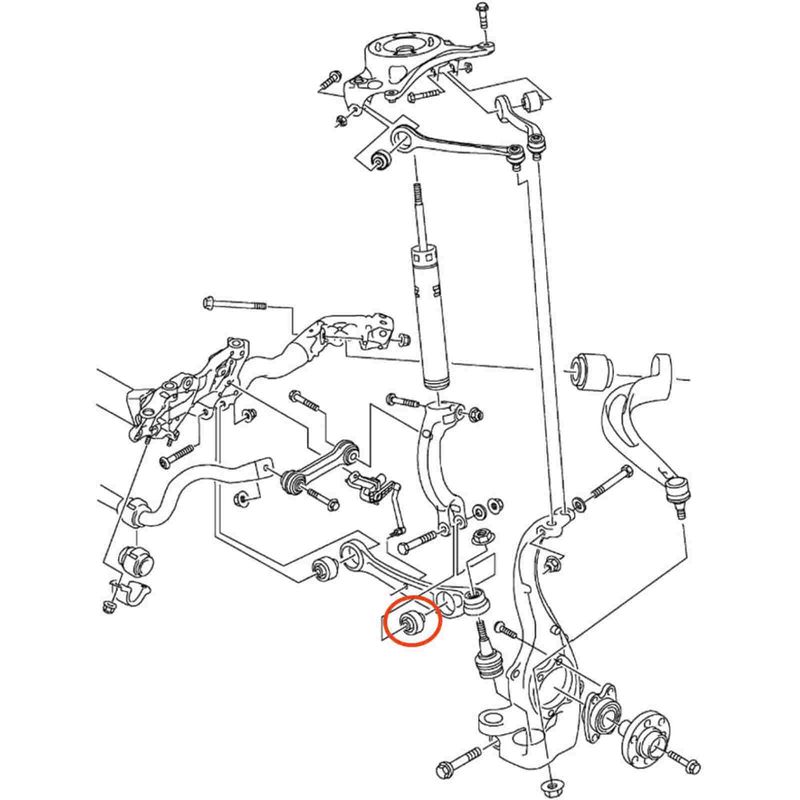 Bucha central do braço reto inferior da suspensão dianteira do lado direito ou esquerdo.