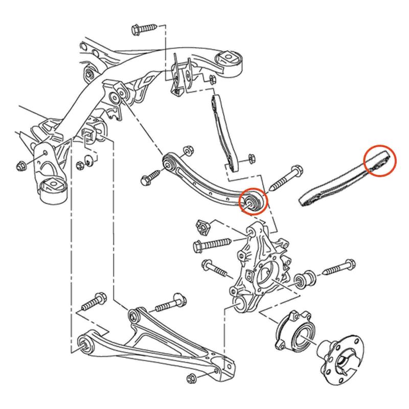 Bucha externa do braço superior anterior ou interna do braço inferior do lado direito ou esquerdo da suspensão traseira.
