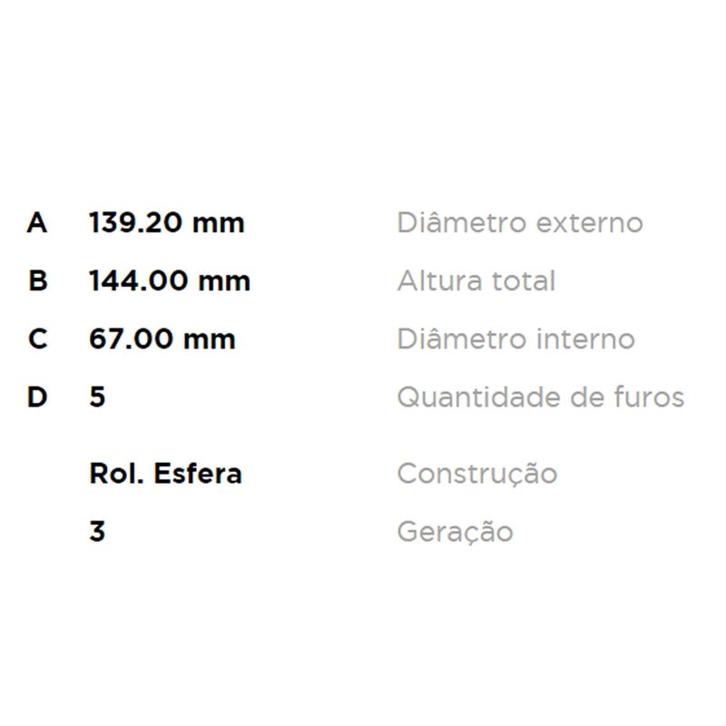 - Diâmetro interno de 67,00mm;