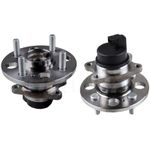 Cubo com rolamento das rodas do eixo traseiro. Propriedades: - Diâmetro externo (DE) de 140,00mm; - Altura total de 84,30mm; - Cubo com 4 furos; - Rolamento esfera; Observação: - Utilizam-se 02 por veículo; - Não acompanha parafusos/porcas de roda;