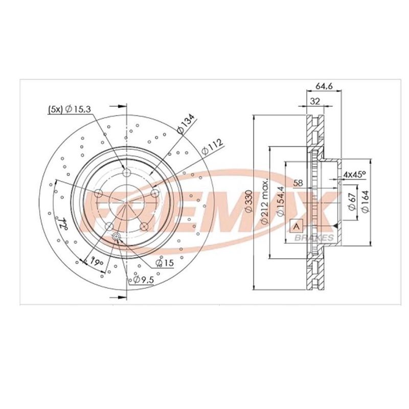 Par de discos de freio ventilado dianteiro. Propriedades: - Sem cubo; - Disco ventilado; - Diâmetro total (DT) de 330,00mm; - Espessura da pista de 32,00mm; - Espessura mínima de 30,00mm; - Altura total de 64,50mm; - Diâmetro total do furo de 67,00mm; - Quantidade de 5 furos; Observação: - Utiliza-se 01 jogo por veículo.