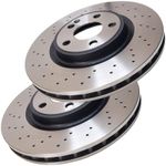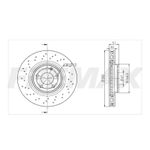 Par de discos de freio dianteiro ventilado e perfurado. Propriedades: - Sem cubo; - Disco ventilado e perfurado; - (A) Diâmetro externo de 320,00mm; - (TH) Espessura da pista de 30,00mm; - (Min TH) Espessura mínima de 27,40mm; - (B) Altura total de 51,10mm; - (C) Diâmetro furo total de 112,00mm; - (E) 5 furos.