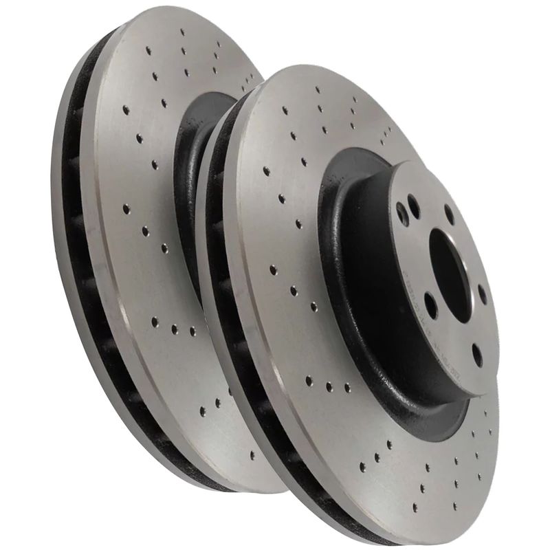 Par de discos de freio ventilado dianteiro. Propriedades: - Sem cubo; - Disco ventilado; - Diâmetro total (DT) de 330,00mm; - Espessura da pista de 32,00mm; - Espessura mínima de 30,00mm; - Altura total de 64,50mm; - Diâmetro total do furo de 67,00mm; - Quantidade de 5 furos; Observação: - Utiliza-se 01 jogo por veículo.