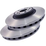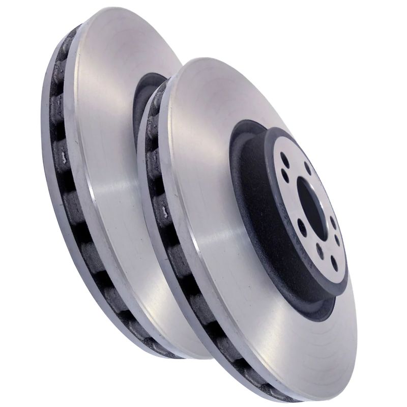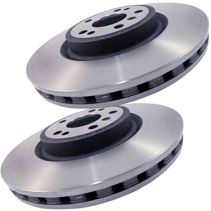 Par de discos de freio ventilado dianteiro. Propriedades: - Diâmetro total (DT) de 330,00mm; - Espessura da pista de 32,00mm; - Espessura mínima de 29,40mm; - Altura total de 54,50mm; - Diâmetro total do furo de 67,00mm; - Quantidade de 5 furos; Observação: - Sem cubo; - Disco ventilado; - Utiliza-se 01 jogo por veículo.