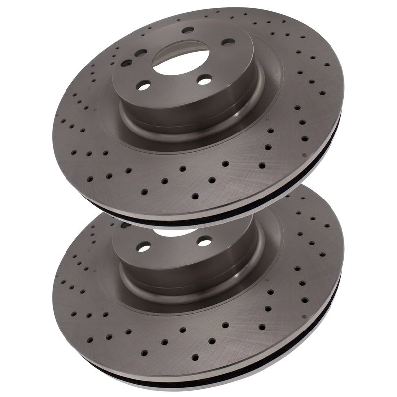 Par de discos de freio ventilado e perfurado dianteiro. Propriedades: - Sem cubo; - Disco ventilado; - Disco perfurado; - Diâmetro total (DT) de 350,00mm; - Espessura da pista de 32,00mm; - Espessura mínima de 30,00mm; - Altura total de 64,50mm; - Diâmetro total do furo de 67,00mm; - Quantidade de 5 furos; Observação: - Utiliza-se 01 jogo por veículo.