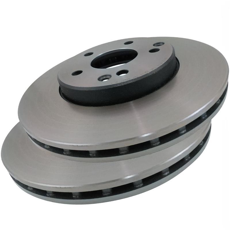 Par de discos de freio dianteiro ventilado.