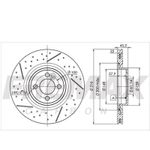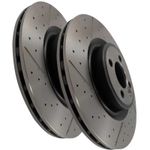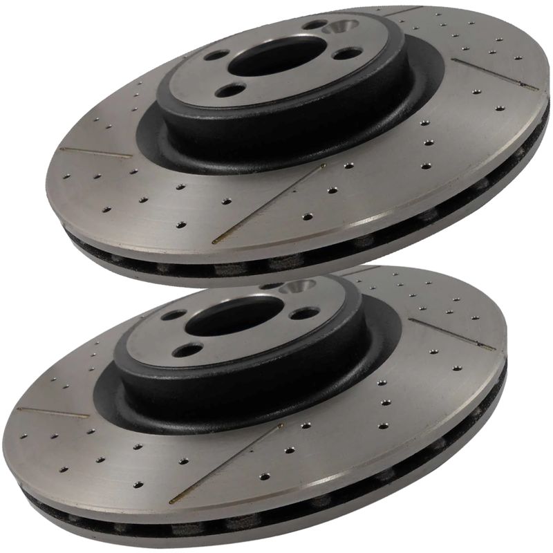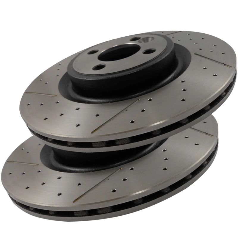 Par de discos de freio ventilado dianteiro slotado e perfurado. Propriedades: - Diâmetro total (DT) de 316,00mm; - Espessura da pista de 22,00mm; - Espessura mínima de 20,40mm; - Altura total de 45,00mm; - Diâmetro total do furo de 64,00mm; - Quantidade de 4 furos; Observação: - Sem cubo; - Disco ventilado, slotado e perfurado; - Utiliza-se 01 jogo por veículo.