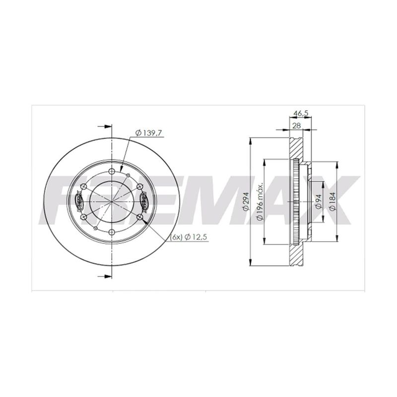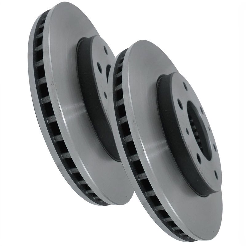 Par de discos de freio ventilado dianteiro. Propriedades: - Sem cubo; - Disco ventilado; - Diâmetro total (DT) de 294mm; - Espessura da pista de 28mm; - Espessura mínima de 26,4mm; - Altura total de 46,5mm; - Diâmetro total do furo de 94mm; - Quantidade de 6 furos; Observação: - Utiliza-se 01 jogo por veículo.