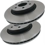 Par de discos de freio dianteiro ventilado. Propriedades: - Sem cubo; - Disco ventilado; - (A) Diâmetro externo de 296,00mm; - (TH) Expessura da pista de 28,00mm; - (Min TH) Expessura mínima de 26,00mm; - (B) Altura total de 56,80mm; - 6 furos.
