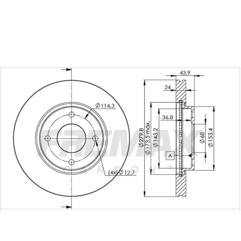 Par de discos de freio ventilado dianteiro. Propriedades: - Sem cubo; - Disco ventilado; - Diâmetro total (DT) de 280,00mm; - Espessura da pista de 24,00mm; - Espessura mínima de 22,00mm; - Altura total de 44,50mm; - Diâmetro total do furo de 68,00mm; - Quantidade de 4 furos; Observação: - Utiliza-se 01 jogo por veículo.