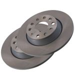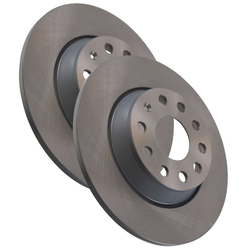 Par de discos de freio sólido traseiro. Propriedades: - Sem cubo; - Disco sólido; - Diâmetro total (DT) de 282,00mm; - Espessura da pista de 12,00mm; - Espessura mínima de 10,00mm; - Altura total de 48,00mm; - Diâmetro total do furo de 65,00mm; - Quantidade de 9 furos; Observação: - Utiliza-se 01 jogo por veículo.