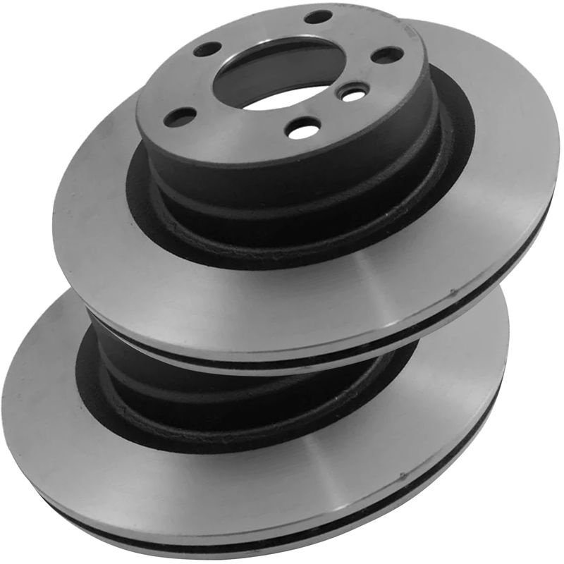 Par de discos de freio ventilado do eixo traseiro. Propriedades: - Diâmetro total (DT) de 300,00mm; - Espessura da pista de 20,00mm; - Espessura mínima de 18,40mm; - Altura total de 66,00mm; - Diâmetro total do furo de 75,00mm; - Quantidade de 5/6 furos; - diâmetro interno do alojamento da lona de freio do estacionamento 161,00mm. Observação: - Sem cubo; - Disco ventilado; - Utiliza-se 01 jogo por veículo.