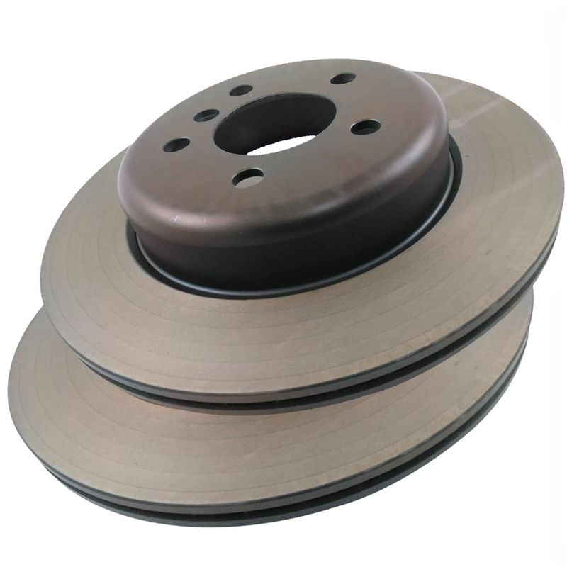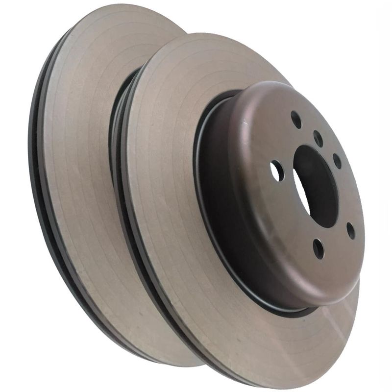 Par de discos de freio ventilado traseiro. Propriedades: - Diâmetro total (DT) de 330,00mm; - Espessura da pista de 20,00mm; - Espessura mínima de 18,40mm; - Altura total de 69,00mm; - Diâmetro total do furo de 75,00mm; - Quantidade de 5 furos; Observação: - Sem cubo; - Disco ventilado; - Utiliza-se 01 jogo por veículo.