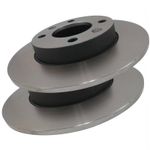 Par de discos de freio sólido traseiro. Propriedades: - Sem cubo; - Disco sólido; - Diâmetro total (DT) de 247,00mm; - Espessura da pista de 9,00mm; - Espessura mínima de 7,50mm; - Altura total de 35,50mm; - Diâmetro total do furo de 71,00mm; - Quantidade de 4 furos; Observação: - Utiliza-se 01 jogo por veículo.