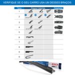 Palheta Aerotwin original Bosch para limpador de para-brisa dianteiro. Essa palheta serve apenas para os veículos com os seguintes tipos de braços: - 2A, 2B, 2C, 3, 4 e 5. - Essa palheta não serve para braço tipo gancho. Para comprar a palheta certa para o seu carro, verifique antes qual é o tipo de braço que está no seu veículo. Use as fotos desse anuncio para tirar dúvidas. Esta palheta contém com os seguintes adaptadores dentro da caixa: 1; 2; 3; 4; 5. Qual adaptador devo usar durante a montagem no veículo: - Veículo com braço tipo 1 usar adaptador 1 - Veículo com braço tipo 2A usar adaptador 2 - Veículo com braço tipo 2B usar adaptador 2 - Veículo com braço tipo 2C usar adaptador 2 - Veículo com braço tipo 3 usar adaptador 3 - Veículo com braço tipo 4 usar adaptador 4 - Veículo com braço tipo 5 usar adaptador 5 Caso esteja na dúvida verifique fotos e vídeos desse anuncio. Se ainda continuar com dúvida solicite suporte de um vendedor da Allpartsnet. Propriedades: - Modelo AP22M - Palheta de 550,00mm (22") de comprimento; - Modelo Aerotwin Bosch - Uma unidade por caixa