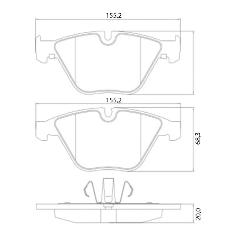 Jogo de pastilhas de freio dianteira de cerâmica. Propriedades: - Comprimento de 155,20mm; - Largura de 68,30mm; - Espessura de 20,00mm; - Sistema de trava ATE; - Com sensor. Principais características da pastilha de cerâmica: - Maior potencial de frenagem; - Maior durabilidade; - Não solta fuligem nas rodas; - Baixa incidência de ruídos.
