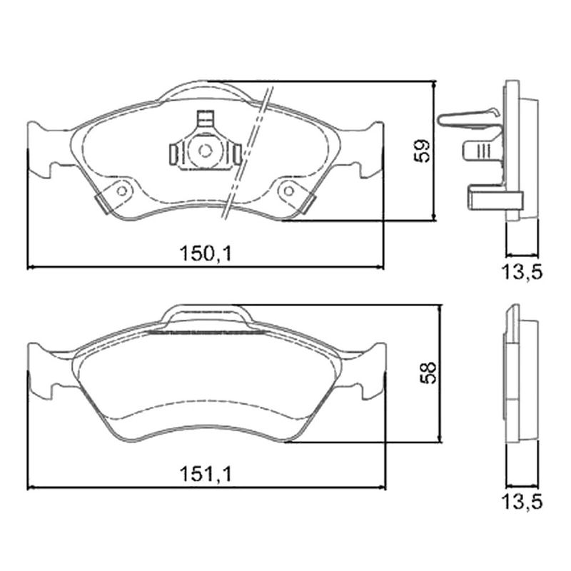 - Comprimento de 151,10mm e 150,10mm;