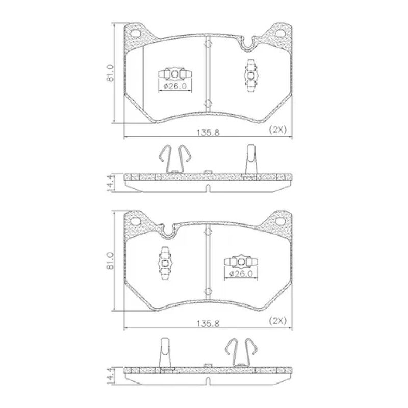 Jogo de pastilhas de freio dianteira de cerâmica.