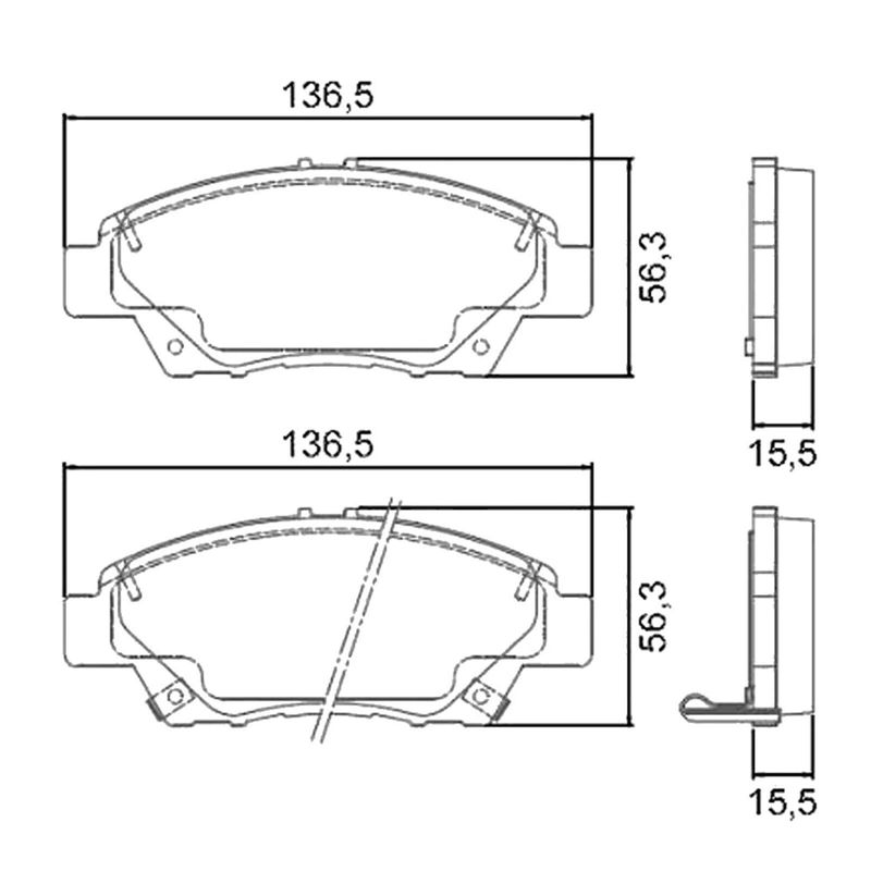 Jogo de pastilhas de freio traseiro. Propriedades: - Altura 56,3mm; 57mm - Largura: 136,5mm; 136,6mm; - Espessura: 15,9mm; - Sistema de freio: Akebono; - sem sensor. Principais características da pastilha de cerâmica: - Maior potencial de frenagem; - Maior durabilidade; - Não solta fuligem nas rodas; - Baixa incidência de ruídos. A Ceramaxx, linha de pastilhas de freio premium da Fras-le, foi desenvolvida para atender altos níveis de exigência do mercado. Sua formulação cerâmica garante alta eficiência e sensibilidade de frenagem, máximo controle de ruído e mínimo resíduo nas rodas.