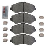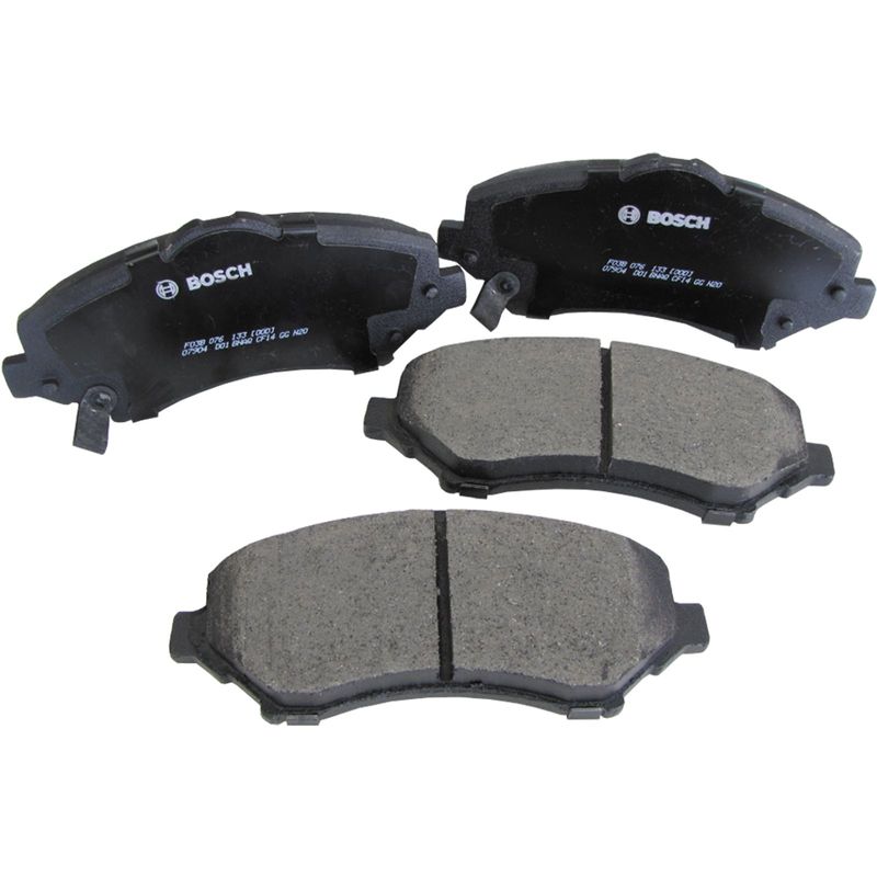 Jogo de pastilhas de freio dianteira de cerâmica. Propriedades: - comprimento: 146,60mm; - largura: 63,50mm; - espessura: 16,50mm; - sem sensor. As pastilhas de freio a disco QuietCast T da Bosch, desenvolvidas para o generalista que trabalha em todas as marcas e modelos durante todo o dia, esta linha premium eleva a tecnologia das pastilhas de freio de pós-venda a um nível totalmente novo. - Material de fricção avançado, específico da plataforma, sem cobre. - Ruído e vibração minimizados para o máximo conforto de condução são garantidos por um material de atrito superior combinado com calços de várias camadas. - Calço de núcleo de borracha pré-fixado, estilo OE para redução de ruído notável. - Desgaste de atrito reduzido e baixa emissão de poeira. - Camada protetora de transferência aumenta a vida útil da almofada e do rotor. - Redução da poeira dos freios significa discos mais limpos por mais tempo. - A redução do desgaste da pastilha e do disco de freio garante uma vida útil mais longa dos componentes do sistema de freio.