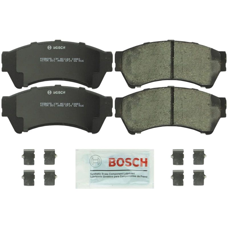 Jogo de pastilhas de freio dianteira de cerâmica. Propriedades: - comprimento: 136,65mm; - altura: 58,78mm; - espessura: 17,86mm; - sem sensor. As pastilhas de freio a disco QuietCast T da Bosch, desenvolvidas para o generalista que trabalha em todas as marcas e modelos durante todo o dia, esta linha premium eleva a tecnologia das pastilhas de freio de pós-venda a um nível totalmente novo. - Material de fricção avançado, específico da plataforma, sem cobre. - Ruído e vibração minimizados para o máximo conforto de condução são garantidos por um material de atrito superior combinado com calços de várias camadas. - Calço de núcleo de borracha pré-fixado, estilo OE para redução de ruído notável. - Desgaste de atrito reduzido e baixa emissão de poeira. - Camada protetora de transferência aumenta a vida útil da almofada e do rotor. - Redução da poeira dos freios significa discos mais limpos por mais tempo. - A redução do desgaste da pastilha e do disco de freio garante uma vida útil mais longa dos componentes do sistema de freio.