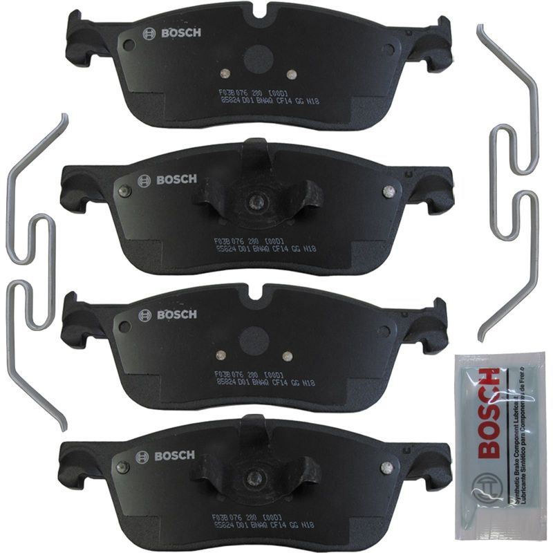 Jogo de pastilhas de freio dianteira QuietCast de cerâmica. Propriedades: - Comprimento de 193,20mm; - Largura de 65,40mm; - Espessura de 19,00mm e 18,00mm; - Sem sensor; - Sistema de trava: ATE; As pastilhas de freio a disco QuietCast ? da Bosch, desenvolvidas para o generalista que trabalha em todas as marcas e modelos durante todo o dia, esta linha premium eleva a tecnologia das pastilhas de freio de pós-venda a um nível totalmente novo. - Material de fricção avançado, específico da plataforma, sem cobre. - Ruído e vibração minimizados para o máximo conforto de condução são garantidos por um material de atrito superior combinado com calços de várias camadas. - Calço de núcleo de borracha pré-fixado, estilo OE para redução de ruído notável. - Desgaste de atrito reduzido e baixa emissão de poeira. - Camada protetora de transferência aumenta a vida útil da almofada e do rotor. - Redução da poeira dos freios significa discos mais limpos por mais tempo. - A redução do desgaste da pastilha e do disco de freio garante uma vida útil mais longa dos componentes do sistema de freio.