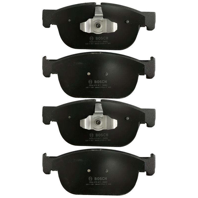 Jogo de pastilhas de freio dianteira QuietCast de cerâmica. Propriedades: - Comprimento de 180,2; - Largura de 74,6mm; - Espessura de 18,4mm; - Sem sensor; - Sistema de trava: Teves; As pastilhas de freio a disco QuietCast ? da Bosch, desenvolvidas para o generalista que trabalha em todas as marcas e modelos durante todo o dia, esta linha premium eleva a tecnologia das pastilhas de freio de pós-venda a um nível totalmente novo. - Material de fricção avançado, específico da plataforma, sem cobre. - Ruído e vibração minimizados para o máximo conforto de condução são garantidos por um material de atrito superior combinado com calços de várias camadas. - Calço de núcleo de borracha pré-fixado, estilo OE para redução de ruído notável. - Desgaste de atrito reduzido e baixa emissão de poeira. - Camada protetora de transferência aumenta a vida útil da almofada e do rotor. - Redução da poeira dos freios significa discos mais limpos por mais tempo. - A redução do desgaste da pastilha e do disco de freio garante uma vida útil mais longa dos componentes do sistema de freio.