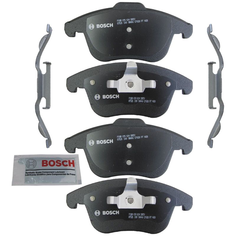 Jogo de pastilhas de freio dianteira QuietCast de cerâmica. Propriedades: - Comprimento de 156,20mm e 155,10mm; - Largura de 72,00mm e 66,60mm; - Espessura de 19,10mm e 20,30mm; - Sem sensor; - Sistema de trava: ATE; As pastilhas de freio a disco QuietCast ? da Bosch, desenvolvidas para o generalista que trabalha em todas as marcas e modelos durante todo o dia, esta linha premium eleva a tecnologia das pastilhas de freio de pós-venda a um nível totalmente novo. - Material de fricção avançado, específico da plataforma, sem cobre. - Ruído e vibração minimizados para o máximo conforto de condução são garantidos por um material de atrito superior combinado com calços de várias camadas. - Calço de núcleo de borracha pré-fixado, estilo OE para redução de ruído notável. - Desgaste de atrito reduzido e baixa emissão de poeira. - Camada protetora de transferência aumenta a vida útil da almofada e do rotor. - Redução da poeira dos freios significa discos mais limpos por mais tempo. - A redução do desgaste da pastilha e do disco de freio garante uma vida útil mais longa dos componentes do sistema de freio.