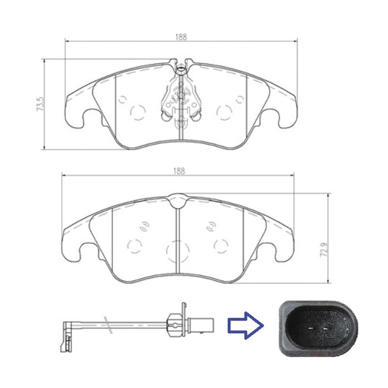 Jogo de pastilhas de freio dianteira QuietCast de cerâmica. Propriedades: - Comprimento de 188mm; - Largura de 73mm; - Espessura de 18,00mm; - Sistema de trava TRW; - Com sensor. As pastilhas de freio a disco QuietCast ? da Bosch, desenvolvidas para o generalista que trabalha em todas as marcas e modelos durante todo o dia, esta linha premium eleva a tecnologia das pastilhas de freio de pós-venda a um nível totalmente novo. - Material de fricção avançado, específico da plataforma, sem cobre. - Ruído e vibração minimizados para o máximo conforto de condução são garantidos por um material de atrito superior combinado com calços de várias camadas. - Calço de núcleo de borracha pré-fixado, estilo OE para redução de ruído notável. - Desgaste de atrito reduzido e baixa emissão de poeira. - Camada protetora de transferência aumenta a vida útil da almofada e do rotor. - Redução da poeira dos freios significa discos mais limpos por mais tempo. - A redução do desgaste da pastilha e do disco de freio garante uma vida útil mais longa dos componentes do sistema de freio.