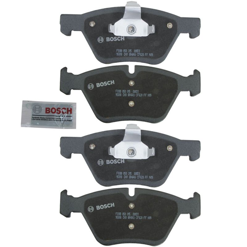 Jogo de pastilhas de freio dianteira QuietCast de cerâmica. Propriedades: - Comprimento de 155,10mm e 154,60mm; - Largura de 63,70mm e 63,50mm; - Espessura de 20,30mm; - Sistema de trava Teves; - Sem sensor. As pastilhas de freio a disco QuietCast ? da Bosch, desenvolvidas para o generalista que trabalha em todas as marcas e modelos durante todo o dia, esta linha premium eleva a tecnologia das pastilhas de freio de pós-venda a um nível totalmente novo. - Material de fricção avançado, específico da plataforma, sem cobre. - Ruído e vibração minimizados para o máximo conforto de condução são garantidos por um material de atrito superior combinado com calços de várias camadas. - Calço de núcleo de borracha pré-fixado, estilo OE para redução de ruído notável. - Desgaste de atrito reduzido e baixa emissão de poeira. - Camada protetora de transferência aumenta a vida útil da almofada e do rotor. - Redução da poeira dos freios significa discos mais limpos por mais tempo. - A redução do desgaste da pastilha e do disco de freio garante uma vida útil mais longa dos componentes do sistema de freio.