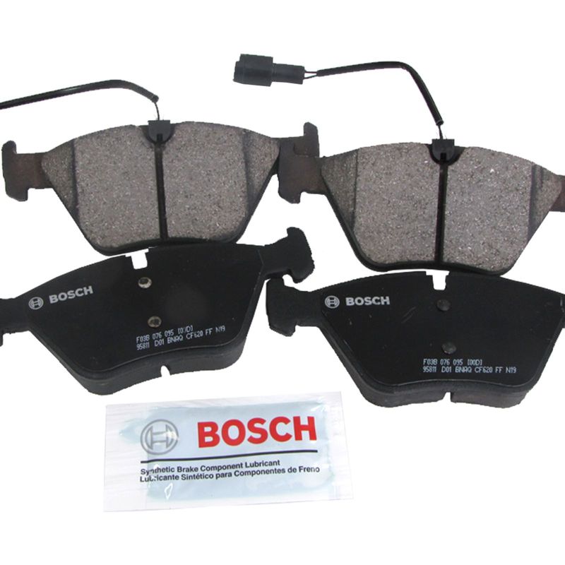 Jogo de pastilhas de freio dianteira QuietCast de cerâmica. Propriedades: - Comprimento de 156,50mm e 155,50mm; - Largura de 64,00mm; - Espessura de 20,00mm; - Sistema de trava ATE; - Com sensor. As pastilhas de freio a disco QuietCast ? da Bosch, desenvolvidas para o generalista que trabalha em todas as marcas e modelos durante todo o dia, esta linha premium eleva a tecnologia das pastilhas de freio de pós-venda a um nível totalmente novo. - Material de fricção avançado, específico da plataforma, sem cobre. - Ruído e vibração minimizados para o máximo conforto de condução são garantidos por um material de atrito superior combinado com calços de várias camadas. - Calço de núcleo de borracha pré-fixado, estilo OE para redução de ruído notável. - Desgaste de atrito reduzido e baixa emissão de poeira. - Camada protetora de transferência aumenta a vida útil da almofada e do rotor. - Redução da poeira dos freios significa discos mais limpos por mais tempo. - A redução do desgaste da pastilha e do disco de freio garante uma vida útil mais longa dos componentes do sistema de freio.