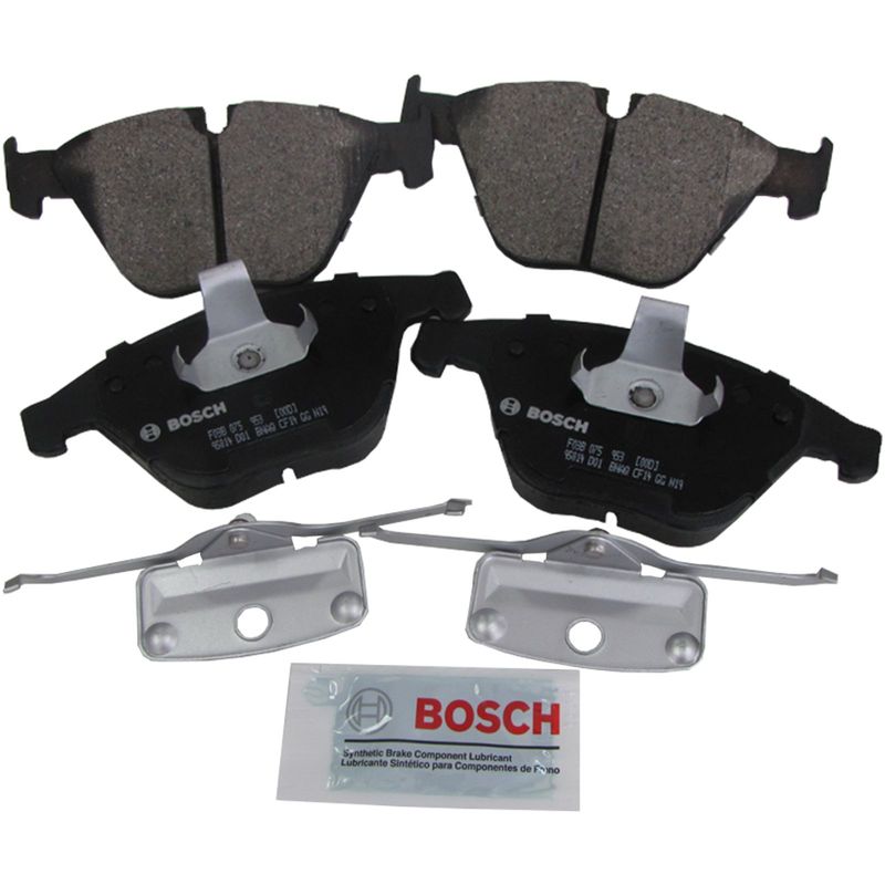 Jogo de pastilhas de freio dianteira de cerâmica. Propriedades: - Comprimento de 155,10mm; - Largura de 68,30mm; - Espessura de 20,30mm; - Sistema de trava Teves; - Sem sensor. As pastilhas de freio a disco QuietCast T da Bosch, desenvolvidas para o generalista que trabalha em todas as marcas e modelos durante todo o dia, esta linha premium eleva a tecnologia das pastilhas de freio de pós-venda a um nível totalmente novo. - Material de fricção avançado, específico da plataforma, sem cobre. - Ruído e vibração minimizados para o máximo conforto de condução são garantidos por um material de atrito superior combinado com calços de várias camadas. - Calço de núcleo de borracha pré-fixado, estilo OE para redução de ruído notável. - Desgaste de atrito reduzido e baixa emissão de poeira. - Camada protetora de transferência aumenta a vida útil da almofada e do rotor. - Redução da poeira dos freios significa discos mais limpos por mais tempo. - A redução do desgaste da pastilha e do disco de freio garante uma vida útil mais longa dos componentes do sistema de freio.