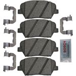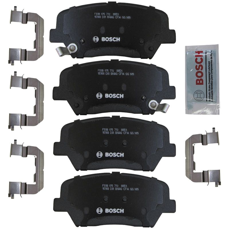 Jogo de pastilhas de freio dianteira QuietCast de cerâmica. Propriedades: - Comprimento de 132,80mm; - Largura de 59,80mm; - Espessura de 17,40mm; - Sistema de trava Mando; - Sem sensor. As pastilhas de freio a disco QuietCast ? da Bosch, desenvolvidas para o generalista que trabalha em todas as marcas e modelos durante todo o dia, esta linha premium eleva a tecnologia das pastilhas de freio de pós-venda a um nível totalmente novo. - Material de fricção avançado, específico da plataforma, sem cobre. - Ruído e vibração minimizados para o máximo conforto de condução são garantidos por um material de atrito superior combinado com calços de várias camadas. - Calço de núcleo de borracha pré-fixado, estilo OE para redução de ruído notável. - Desgaste de atrito reduzido e baixa emissão de poeira. - Camada protetora de transferência aumenta a vida útil da almofada e do rotor. - Redução da poeira dos freios significa discos mais limpos por mais tempo. - A redução do desgaste da pastilha e do disco de freio garante uma vida útil mais longa dos componentes do sistema de freio.