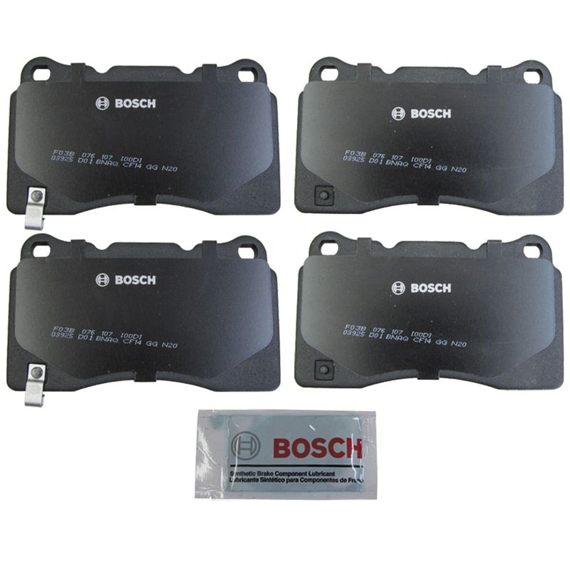 Jogo de pastilhas de freio dianteira de cerâmica. Propriedades: - Comprimento de 131,80mm; - Largura de 77,30mm; - Espessura de 15,00mm; - Sistema de trava Brembo; - Sem sensor. Observação: - Utiliza-se 01 jogo por veículo. As pastilhas de freio a disco QuietCast T da Bosch, desenvolvidas para o generalista que trabalha em todas as marcas e modelos durante todo o dia, esta linha premium eleva a tecnologia das pastilhas de freio de pós-venda a um nível totalmente novo. - Material de fricção avançado, específico da plataforma, sem cobre. - Ruído e vibração minimizados para o máximo conforto de condução são garantidos por um material de atrito superior combinado com calços de várias camadas. - Calço de núcleo de borracha pré-fixado, estilo OE para redução de ruído notável. - Desgaste de atrito reduzido e baixa emissão de poeira. - Camada protetora de transferência aumenta a vida útil da almofada e do rotor. - Redução da poeira dos freios significa discos mais limpos por mais tempo. - A redução do desgaste da pastilha e do disco de freio garante uma vida útil mais longa dos componentes do sistema de freio.