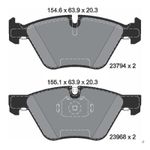Jogo de pastilhas de freio dianteiras (Sistema Teves). Propriedades: - comprimento: 154,60mm, 155,10mm; - largura: 63,90mm; - espessura: 20,30mm; - sem sensor.