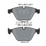 Jogo de pastilhas de freio dianteiras. Propriedades: - Comprimento de 155,10mm; - Largura de 68,30mm; - Espessura de 20,30mm; - Sistema de trava Teves; - Sem sensor.