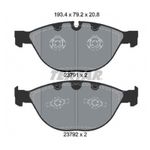 Jogo de pastilhas de freio dianteira. Propriedades: - Comprimento de 193,40mm; - Largura de 79,20mm; - Espessura de 20,80mm; - Sistema de trava Teves; - Sem sensor.