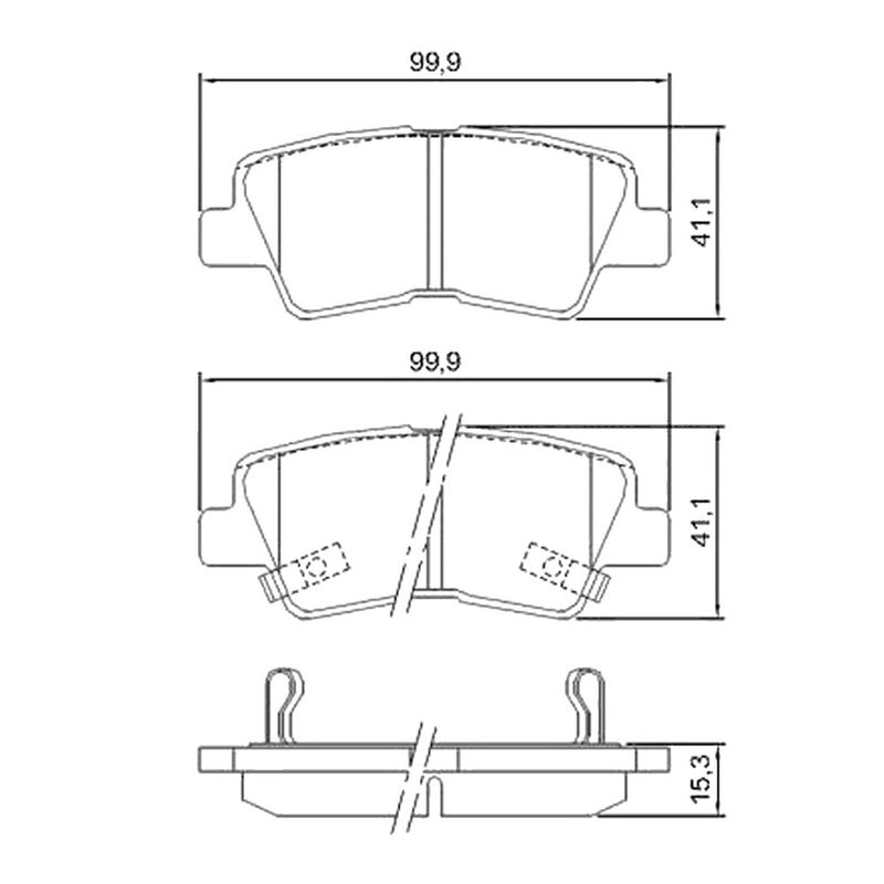 Jogo de pastilhas de freio traseiras de cerâmica. Propriedades: - Comprimento de 99,90mm; - Largura de 41,10mm; - Espessura de 15,30mm; - Sistema Akebono; - Sem sensor. Observação: - Pastilhas com contrapesos; - Utiliza-se 01 jogo por veículo. Principais características da pastilha de cerâmica: - Maior potencial de frenagem; - Maior durabilidade; - Não solta fuligem nas rodas; - Baixa incidência de ruídos.