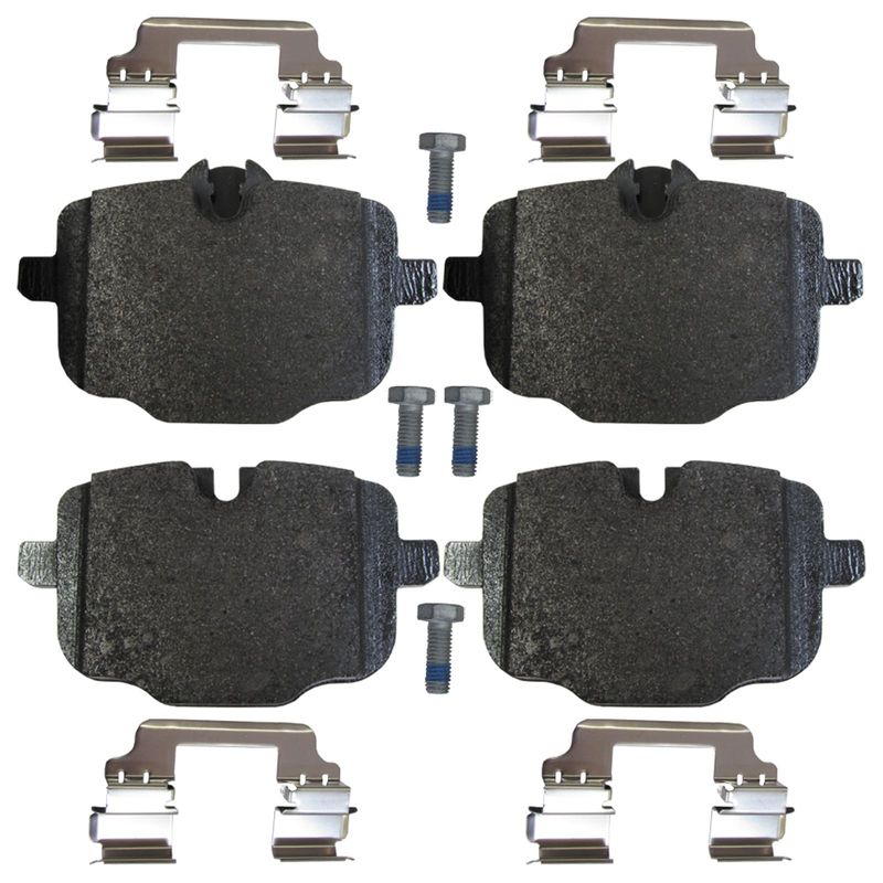 Jogo de pastilhas de freio traseiras. Propriedades: - Comprimento de 116,00mm; - Largura de 65,60mm e 72,60mm; - Espessura de 18,00mm; - Sistema TRW; - Sem sensor.