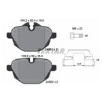 Jogo de pastilha de freio traseira. Propriedades: - Comprimento: 106,20mm; - Largura: 56,00mm, 62,40mm; - Espessura: 18,00mm; - Sistema de trava TRW; - Sem sensor.