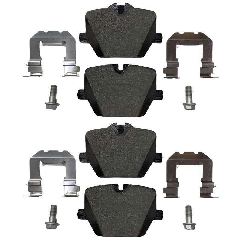 Jogo de pastilhas de freio traseiras. Propriedades: - Comprimento de 110,7mm; - Largura de 73,2mm; - Espessura de 16,8mm; - Sem sensor.