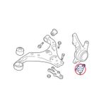 Pivô inferior da bandeja do lado direito ou esquerdo da suspensão dianteira.