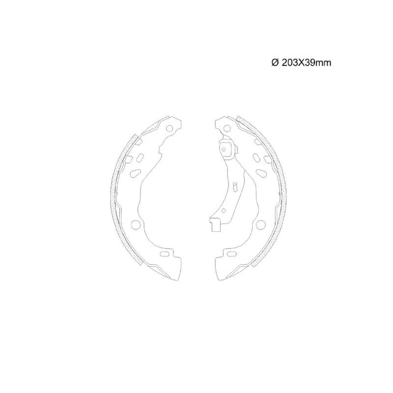Jogo de sapatas de freio. Propriedades - diâmetro 203mm; - largura 39mm; - Sistema de freio TRW. Observação: - utiliza-se 01 jogo por veículo.